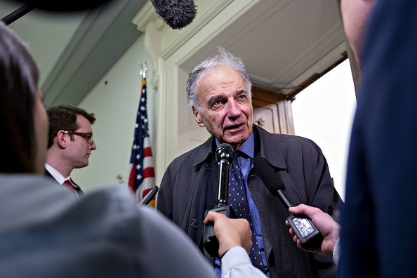 Ralph Nader, founder of Public Citizen Inc., speaks to members of the media during a break of the House Transportation and Infrastructure Committee hearing with Dennis Muilenburg, chief executive officer of Boeing Co., not pictured, in Washington, D.C., U.S., on Wednesday, Oct. 30, 2019. Muilenburg yesterday declined to endorse specific reforms to bolster safety oversight of the aerospace giant during a sometimes angry grilling in his first appearance before Congress since two 737 Max crashes killed 346 people. Photographer: Andrew Harrer/Bloomberg via Getty Images