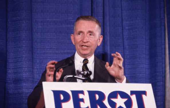 24th June 1992: American businessman and politician Ross Perot, undeclared candidate for president, speaking and gesticulating at a podium during a press conference, Annapolis, Maryland. (Photo by Arnold Sachs/Consolidated News Pictures/Getty Images)