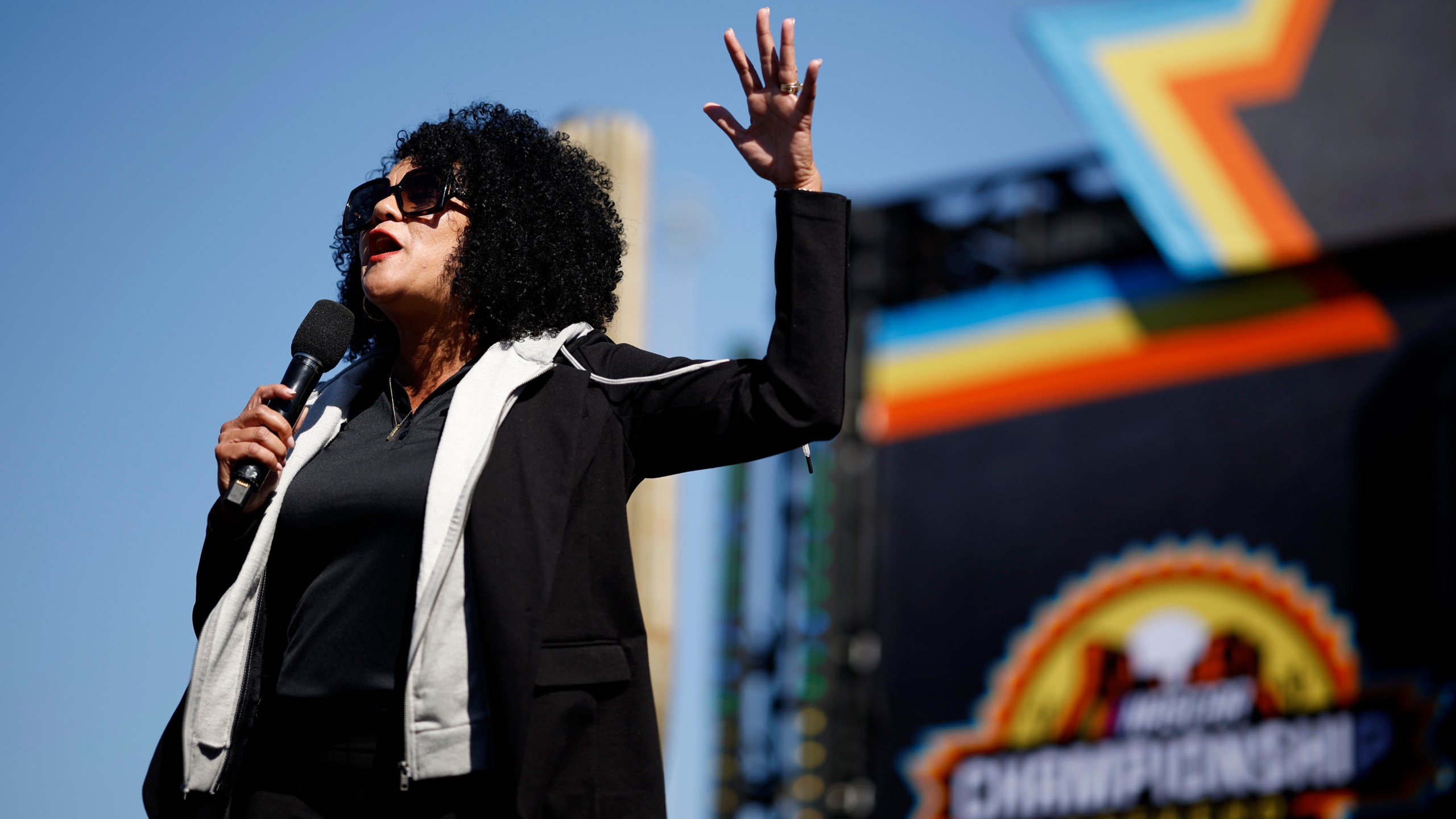 AVONDALE, ARIZONA – NOVEMBER 05: Latasha Causey, president of Phoenix Raceway speaks during the pre-race ceremonies prior to the NASCAR Cup Series Championship at Phoenix Raceway on November 05, 2023 in Avondale, Arizona. (Photo by James Gilbert/Getty Images)