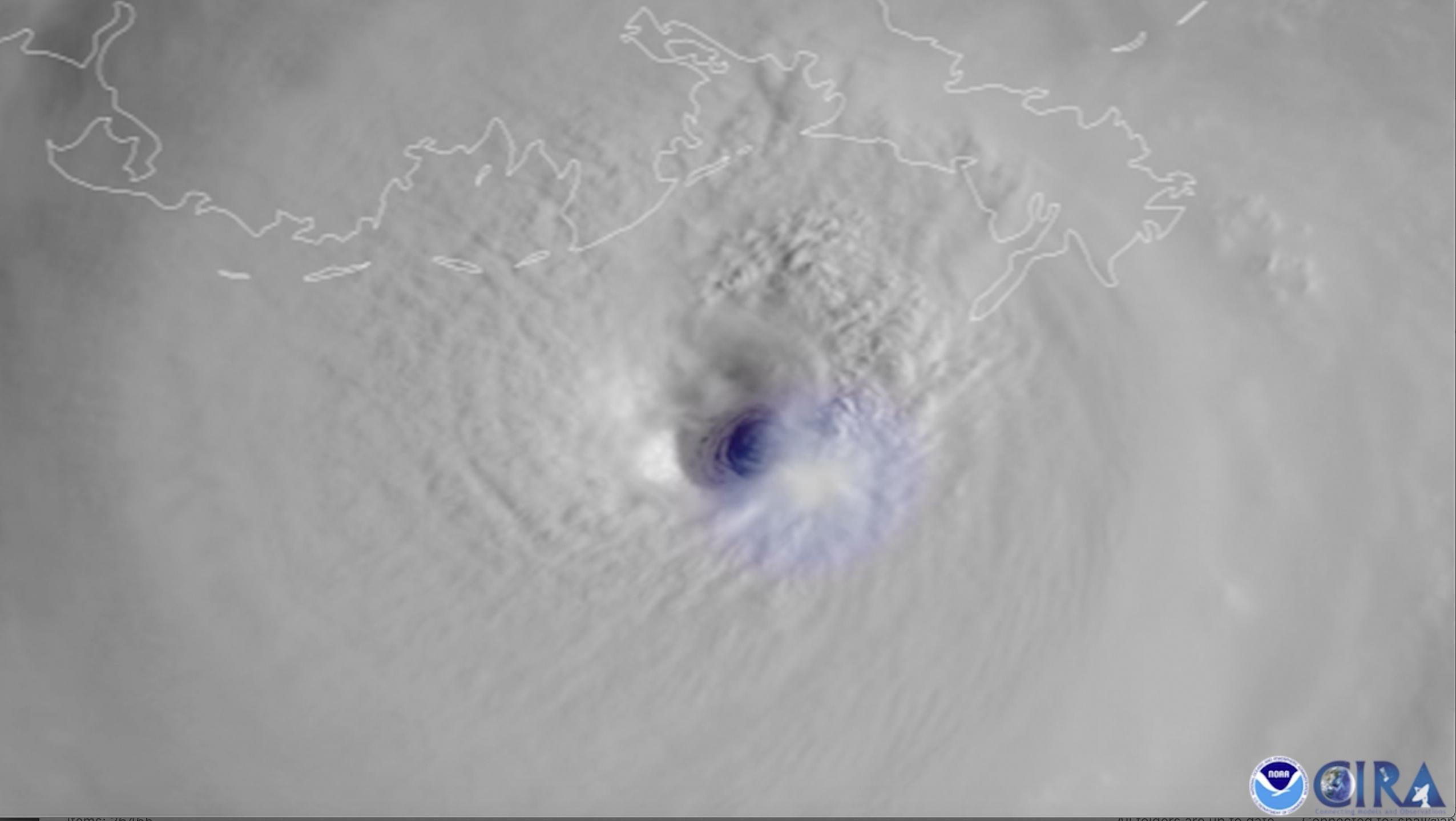 This satellite image provided by the National Oceanic and Atmospheric Administration and captured by NOAA’s GOES-16 shows lightning swirling around the eye of Hurricane Ida as the storm approaches the Louisiana coast, Sunday morning, Aug. 29, 2021. (NOAA via AP)
