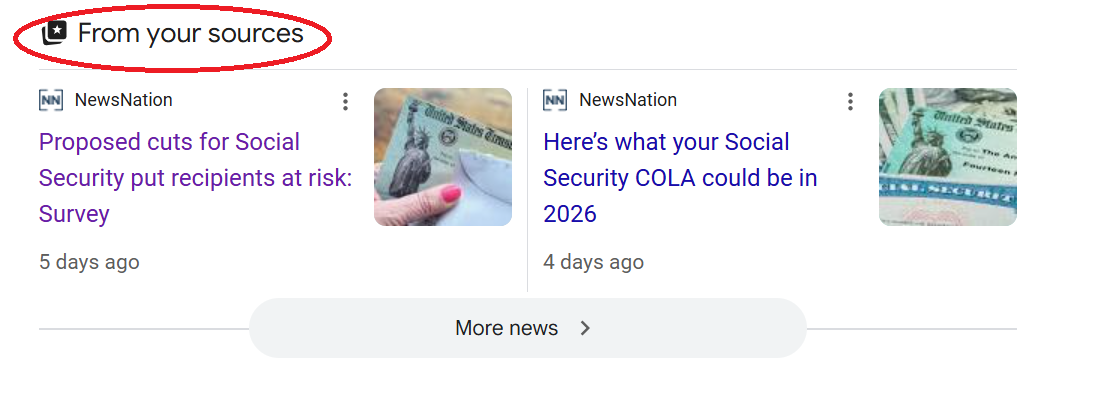With preferred sources, you can create a list of outlets you want to see more often in your results.