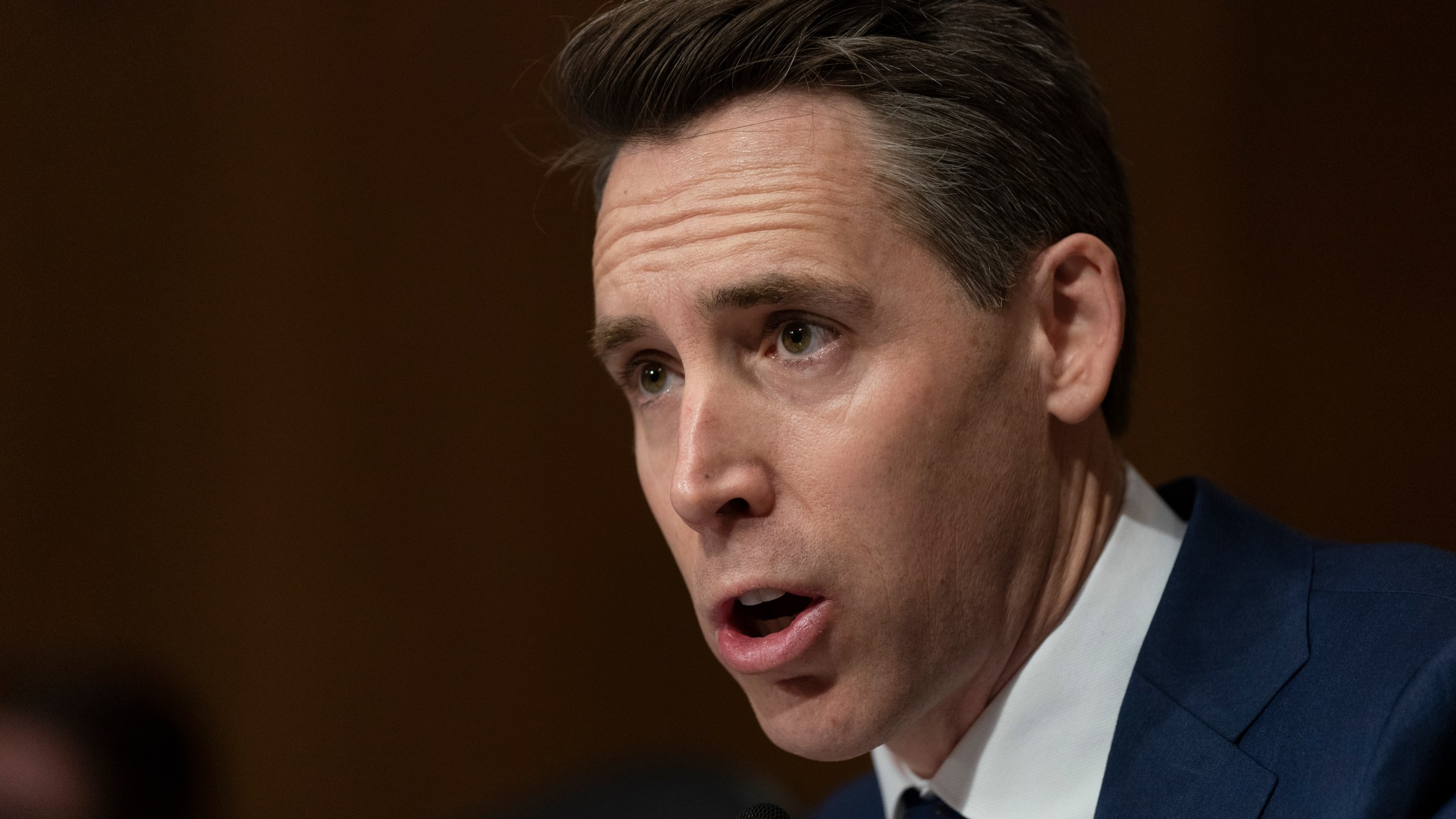 Sen. Josh Hawley, R-Mo., questions Colleen Shogan, nominee to be archivist of the U.S. National Archives and Records Administration during the Senate Homeland Security and Governmental Affairs Committee full committee hearing on Shogan’s nomination on Capitol Hill in Washington, Tuesday, Feb. 28, 2023. (AP Photo/Manuel Balce Ceneta)