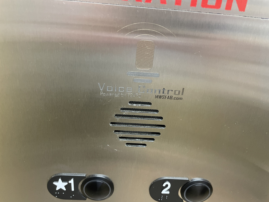 The system works from inside and outside the elevator, the voice tech can handle up to 100 floors by number or specific names like “lobby” or “ballroom level.”