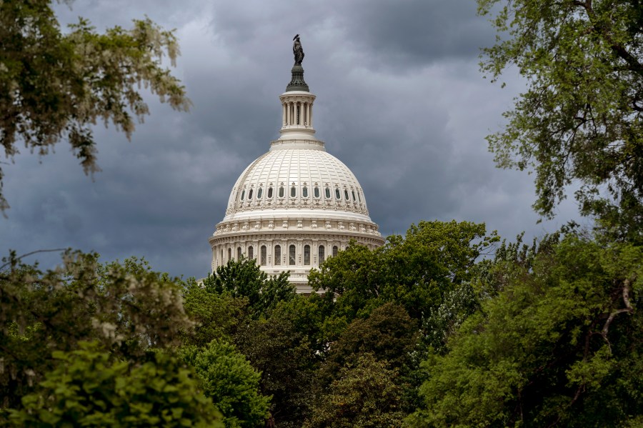 FILE – The Capitol is seen in Washington, Monday, May 1, 2023. Facing the risk of a government default as soon as June 1, President Joe Biden has invited the top four congressional leaders to a White House meeting for talks on Tuesday, May 9. (AP Photo/J. Scott Applewhite, File)