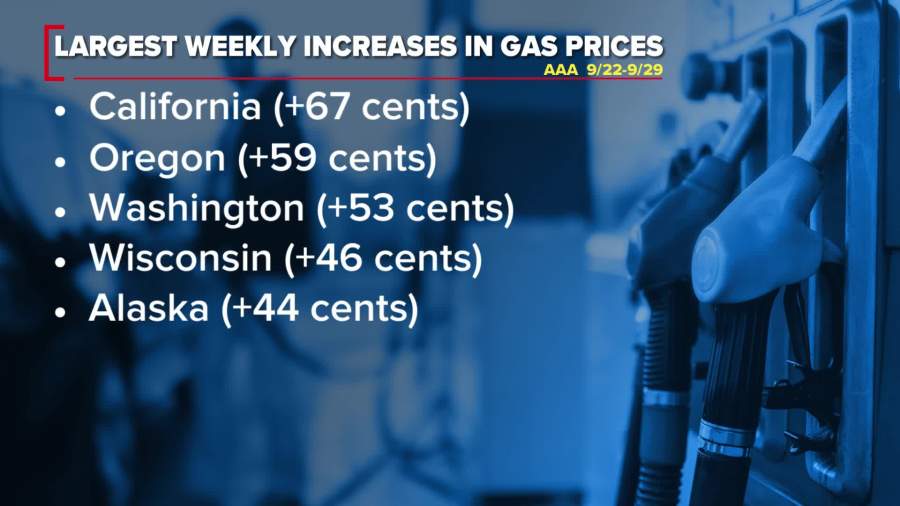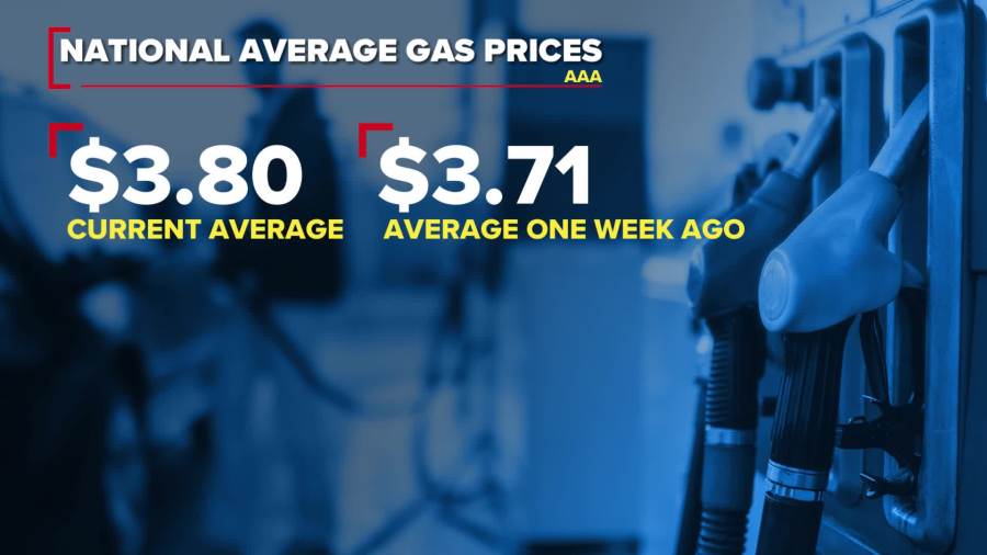 Instead, AAA says refinery issues in the West and Midwest are what’s behind the current average of price per gallon of $3.80 — which is up from $3.71 a week ago.