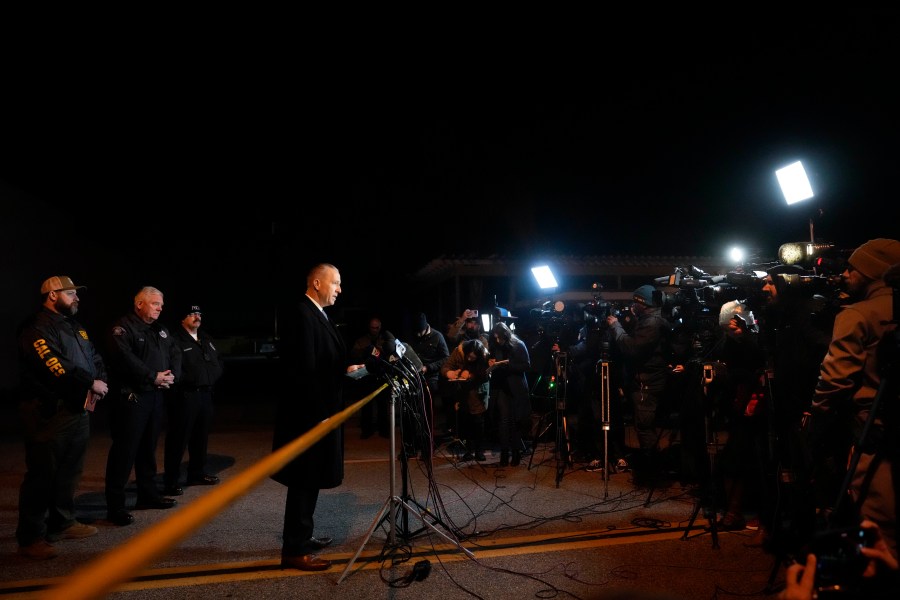 Los Angeles County Sheriff’s Department Capt. Andrew Meyer talks to reporters during a briefing in Monterey Park, Calif., Sunday, Jan. 22, 2023. Nine people were killed in a mass shooting late Saturday in a city east of Los Angeles following a Lunar New Year celebration that attracted thousands, police said. (AP Photo/Jae C. Hong)
