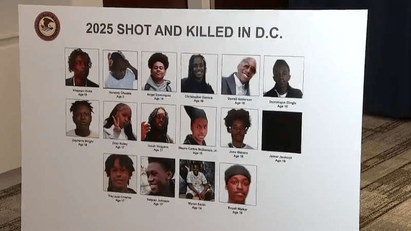 Speaking at a press conference Tuesday, one day after President Donald Trump declared a crime emergency and announced a federal takeover of D.C.’s Metropolitan Police Department, Pirro displayed posters showing 29 youths killed by gunfire in 2024 and 16 in 2025.