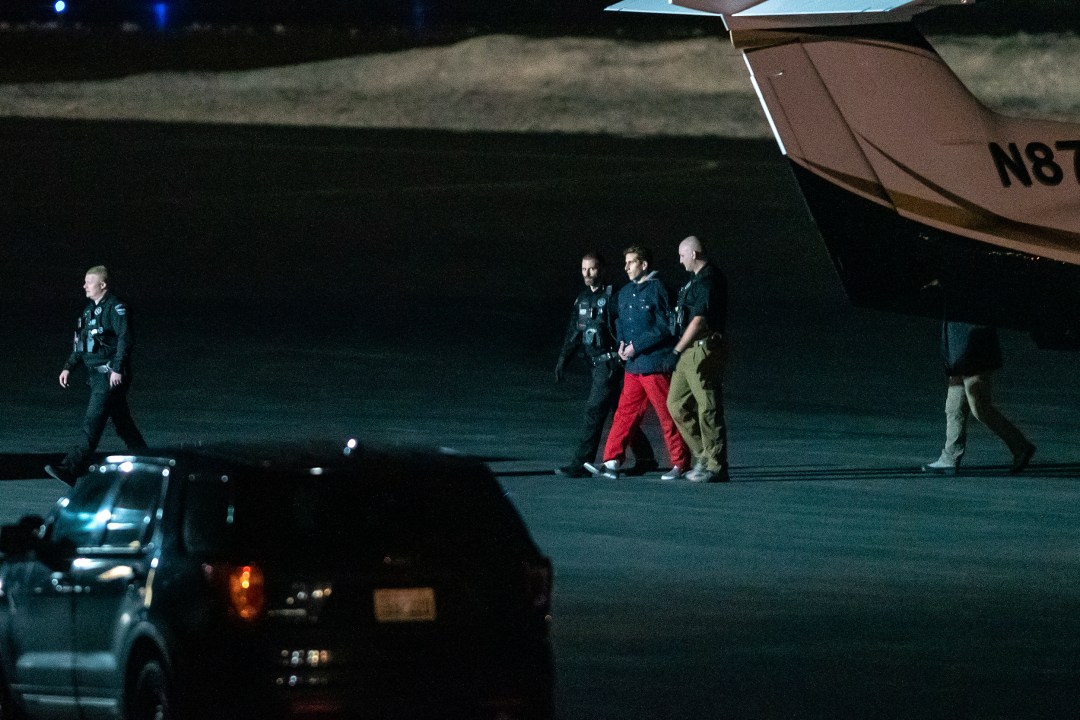 Bryan Kohberger is escorted by law enforcement after arriving at Pullman-Moscow Regional Airport on Thursday, Jan. 4, 2023, in Pullman, Wash. Kohberger was extradited from Pennsylvania earlier Thursday, for the alleged murder of four University of Idaho students on Nov. 13, 2022. (Austin Johnson/Lewiston Tribune via AP)