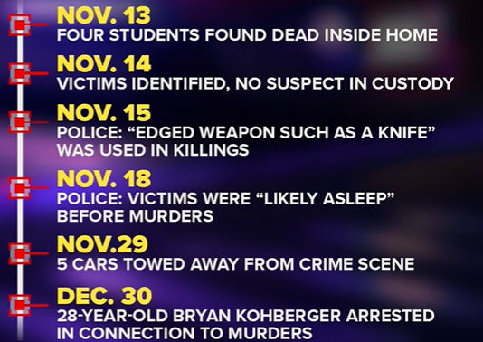 For a comprehensive and updated timeline of the Idaho college killings case, click here.