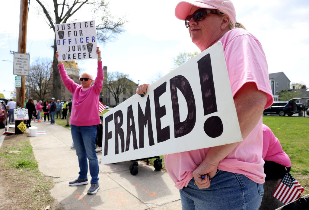 The group, which arrives at protests wearing “Free Karen Read” T-shirts and carrying signs, is required to remain at least 200 feet from the courthouse and inside a buffer zone set up by the trial judge to maintain an unbiased jury.