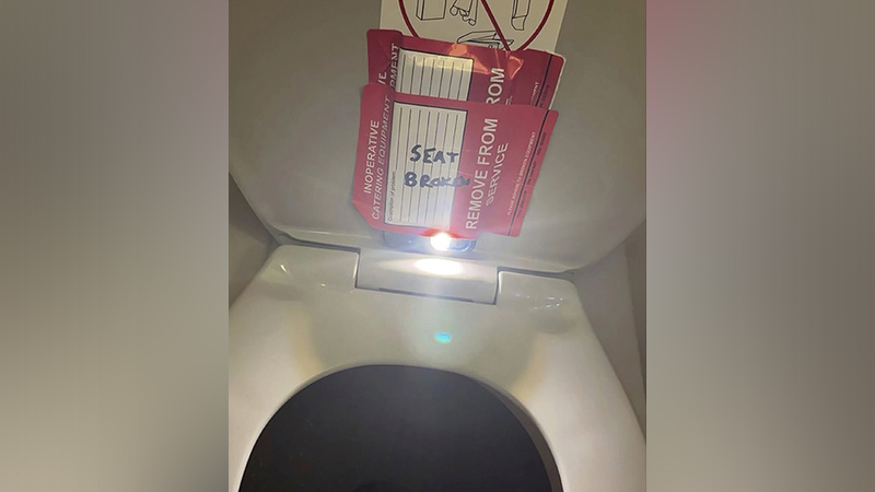 After he left, the teen entered the bathroom and she saw red stickers on the underside of the toilet seat lid, which was in the open position, officials said.