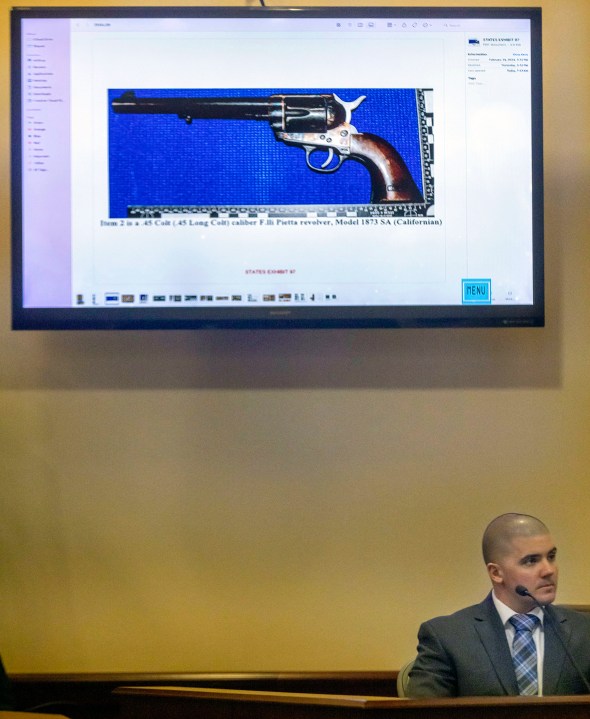 Crime scene technician Marissa Poppell, who photographed and analyzed evidence found on the “Rust” movie set, was the first witness. Jurors were shown photos, including live and “dummy” bullets, as well as ammunition boxes. Somehow, six live rounds made their way on the “Rust” set.