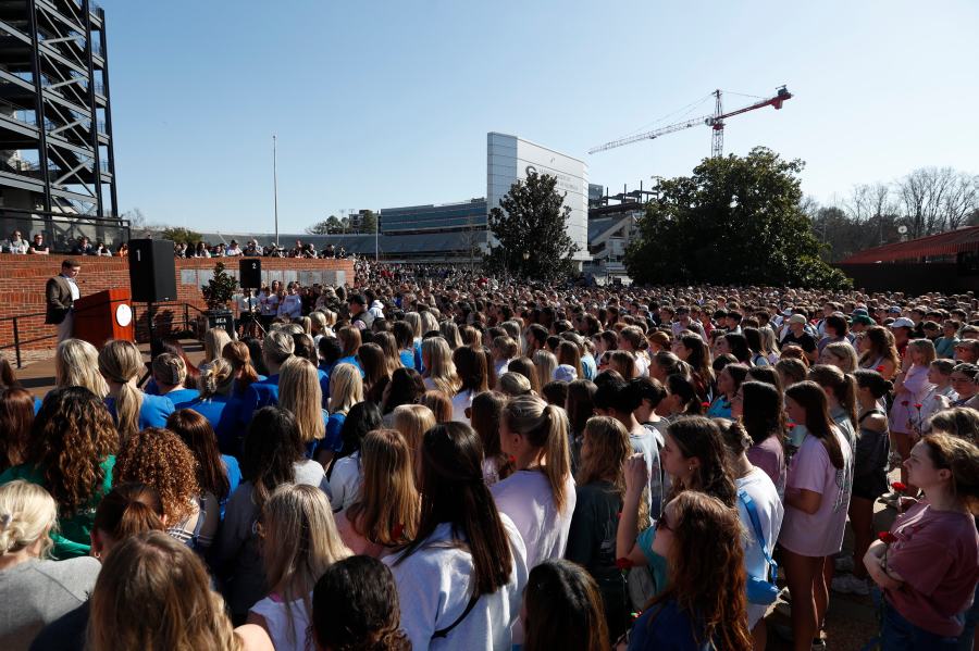 Hundreds of students gathered for an emotional candlelight vigil hosted by Alpha Chi Omega to honor Riley’s life.