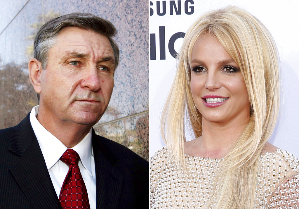 Jamie Spears, father of singer Britney Spears, leaves the Stanley Mosk Courthouse in Los Angeles on Oct. 24, 2012, left, and Britney Spears arrives at the Billboard Music Awards in Las Vegas on May 17, 2015. (AP Photo)