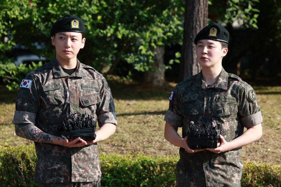YEONCHEON-GUN, SOUTH KOREA – JUNE 11: K-pop band BTS’s members Jungkook (L) and Jimin (R) are discharged from a mandatory military service on June 11, 2025 in Yeoncheon-gun, South Korea. Four members of the K-pop group BTS’s RM, V, Jimin and Jungkook will be discharged from their mandatory 18-month military service next week, the boy band’s agency said. RM, the leader of the group, and V completed the 18-month mandatory military service, which is required for all able-bodied male citizens in South Korea before they turn 28, followed by Jimin and Jungkook the next day, according to BigHit Music. (Photo by Han Myung-Gu/Getty Images)
