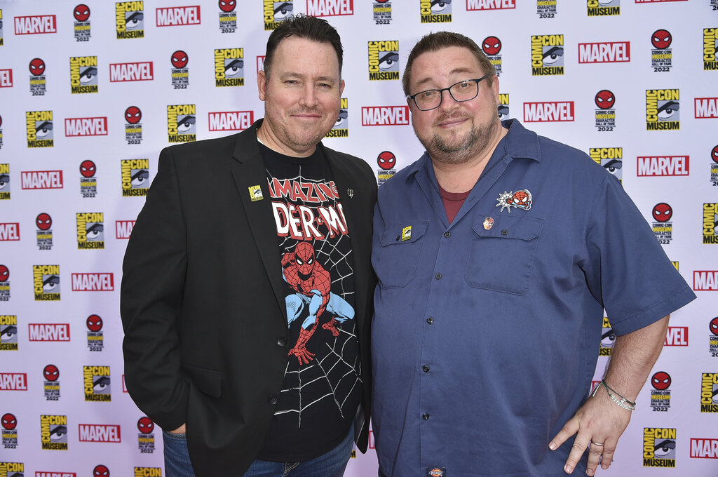 Brian Crosby, left, and C.B.Cebulski attend Marvel’s Spide-Man induction into the Comic-Con Museum Hall of Fame on Wednesday, July 20, 2022, at the Comic-Con Museum in San Diego. (Photo by Richard Shotwell/Invision/AP)