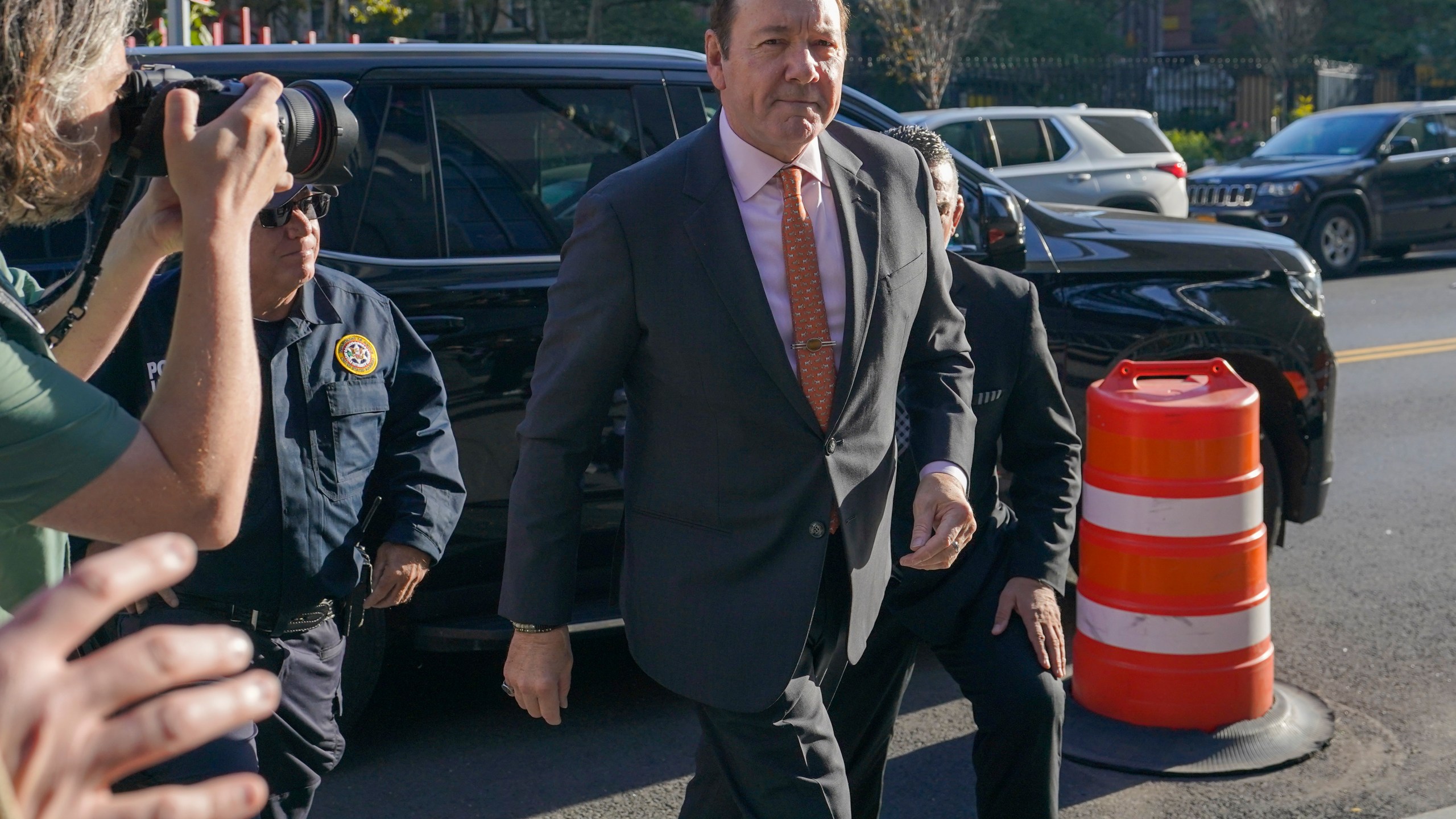 Actor Kevin Spacey arrives at Federal court for his civil lawsuit trial, Wednesday, Oct. 12, 2022, in New York. Spacey is facing a jury in a New York City courtroom during a civil trial accusing him of sexually abusing a 14-year-old actor in the 1980s when he was 26. (AP Photo/Mary Altaffer)