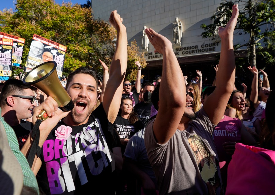 Jubilation erupted outside the courthouse, with fans cheering and shouting after the decision was announced. The crowd chanted “Britney! Britney! Britney!” and fans sang and danced to Spears’ song “Stronger.”