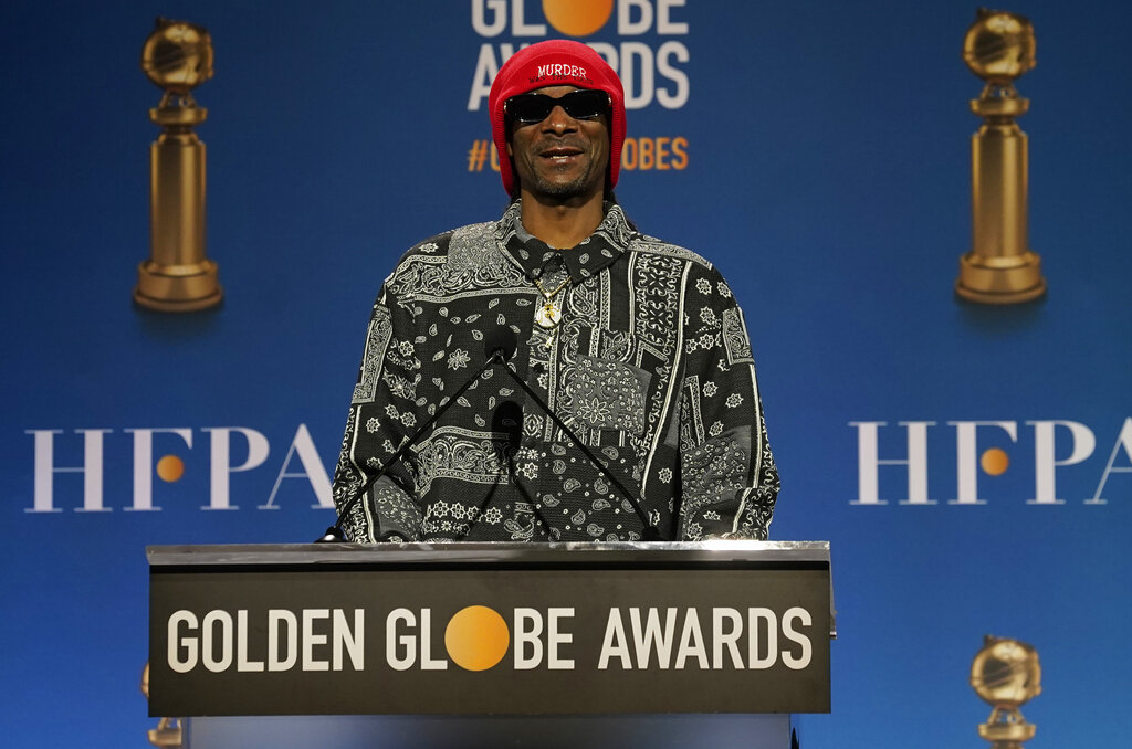 Snoop Dogg announces nominations for the 79th annual Golden Globe Awards at the Beverly Hilton Hotel on Monday, Dec. 13, 2021, in Beverly Hills, Calif. The 79th annual Golden Globe Awards will be held on Sunday, Jan. 9, 2022. (AP Photo/Chris Pizzello)