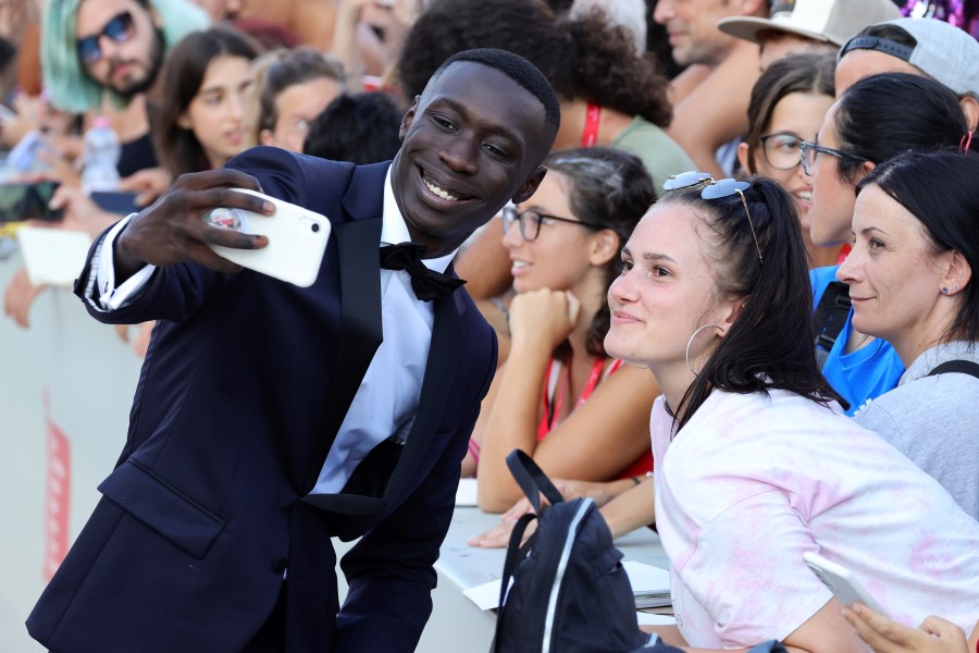 VENICE, ITALY – SEPTEMBER 06: Khaby Lame takes selfies with fans as he attends the “Il Signore Delle Formiche” red carpet at the 79th Venice International Film Festival on September 06, 2022 in Venice, Italy. (Photo by Andreas Rentz/Getty Images)