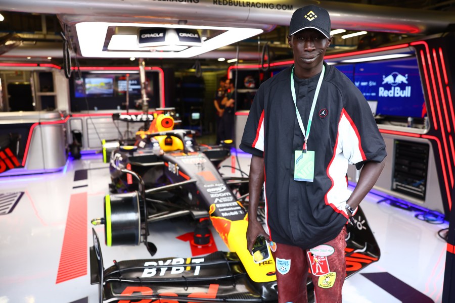 MONZA, ITALY – SEPTEMBER 03: Khaby Lame poses for a photo in the Red Bull Racing garage prior to the F1 Grand Prix of Italy at Autodromo Nazionale Monza on September 03, 2023 in Monza, Italy. (Photo by Mark Thompson/Getty Images)