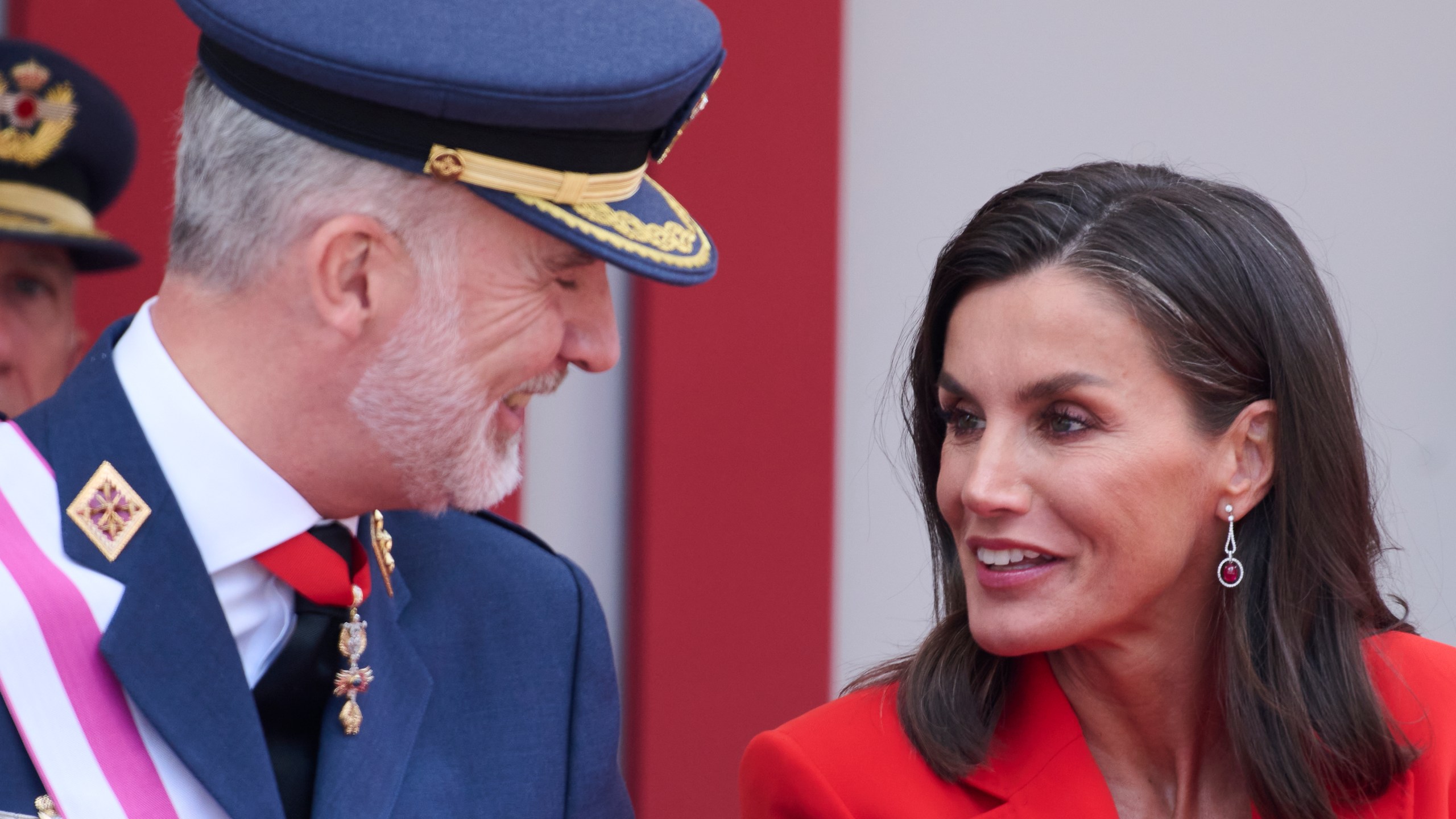 OVIEDO, SPAIN – MAY 25: King Felipe VI of Spain and Queen Letizia of Spain attend the Armed Forces 2024 Day on May 25, 2024 in Oviedo, Spain. (Photo by Carlos Alvarez/Getty Images)