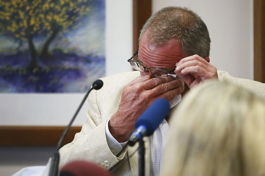 In more than an hour of emotional testimony during which he often fought back tears, Neil Heslin said he has endured online abuse, anonymous phone calls and harassment on the street.