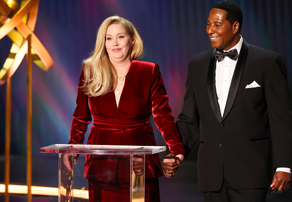 LOS ANGELES, CALIFORNIA – JANUARY 15: Christina Applegate (L) speaks speaks onstage during the 75th Primetime Emmy Awards at Peacock Theater on January 15, 2024 in Los Angeles, California. (Photo by Monica Schipper/WireImage)