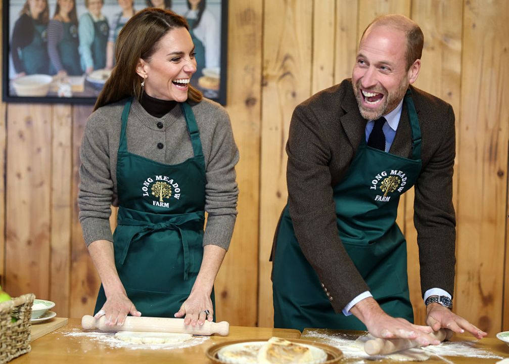 CRAIGAVON, NORTHERN IRELAND – OCTOBER 14: Catherine, Princess of Wales and Prince William, Prince of Wales make a potato and apple cake during a visit to Long Meadow Cider on October 14, 2025 in Craigavon, Northern Ireland. Long Meadow has been owned by the McKeever family for three generations and has been cultivating premium-quality apples since 1968. The Prince and Princess of Wales are visiting organisations providing creative and entrepreneurial opportunities for young people in rural areas of Northern Ireland. (Photo by Chris Jackson – Pool via Samir Hussein/WireImage)