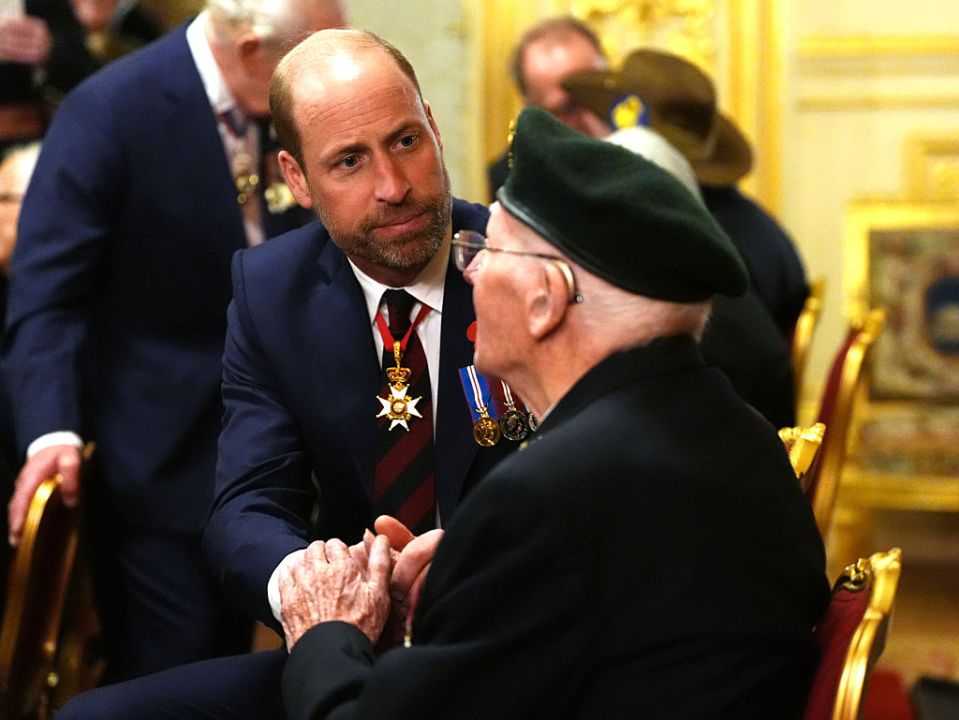 WINDSOR, ENGLAND – NOVEMBER 11: Prince William, Prince of Wales meets veteran Henry Rice at a VJ Day 80th Anniversary Reception at Windsor Castle on November 11, 2025 in Windsor, England. This year marks 80 years since Victory over Japan Day, also known as VJ day, which marks the announcement of Japan’s acceptance of the terms of the Potsdam Declaration on August 15, 1945, effectively bringing WWII to an end. (Photo by Andrew Matthews-Pool/Getty Images)