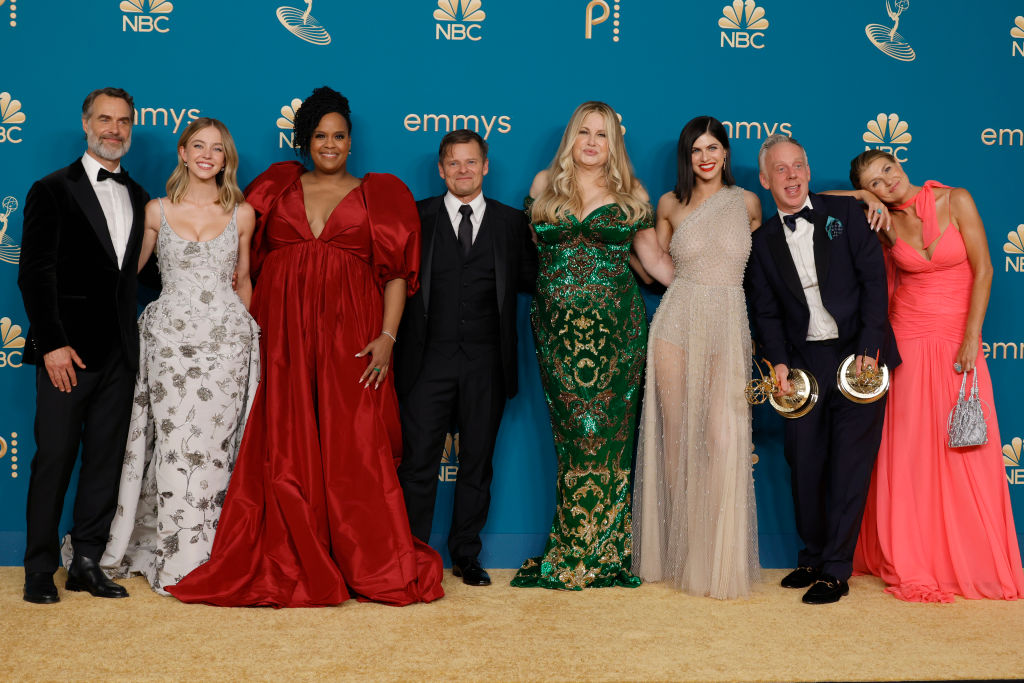 Winners of Outstanding Limited or Anthology Series or Movie for “The White Lotus”, pose in the press room during the 74th Primetime Emmys at Microsoft Theater. (Photo by Frazer Harrison/Getty Images)