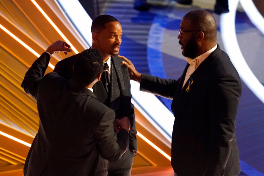 At the commercial break, presenter Daniel Kaluuya came up to hug Smith, and Denzel Washington escorted him to the side of the stage. The two talked and hugged and Tyler Perry came over to talk, as well. Banfield warned of the negative ramifications of the slap being broadcast around the globe.