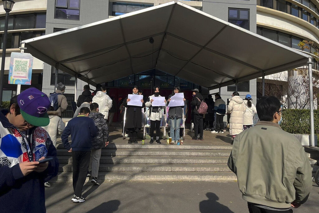In this photo taken on Sunday, Nov. 27, 2022, students hold up blank papers as they stage a protest at Tsinghua University in Beijing, China. Authorities eased anti-virus rules in scattered areas but affirmed China’s severe “zero- COVID” strategy Monday after crowds demanded President Xi Jinping resign during protests against controls that confine millions of people to their homes. (AP Photo)