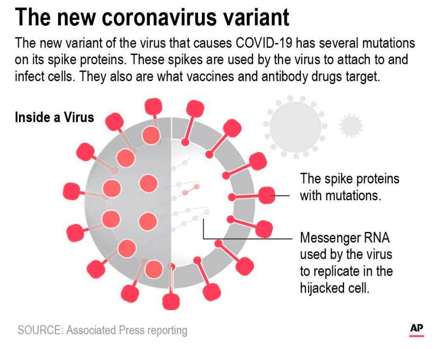 It has many mutations — nearly two dozen — and eight are on the spike protein that the virus uses to attach to and infect cells. The spike is what vaccines and antibody drugs target.