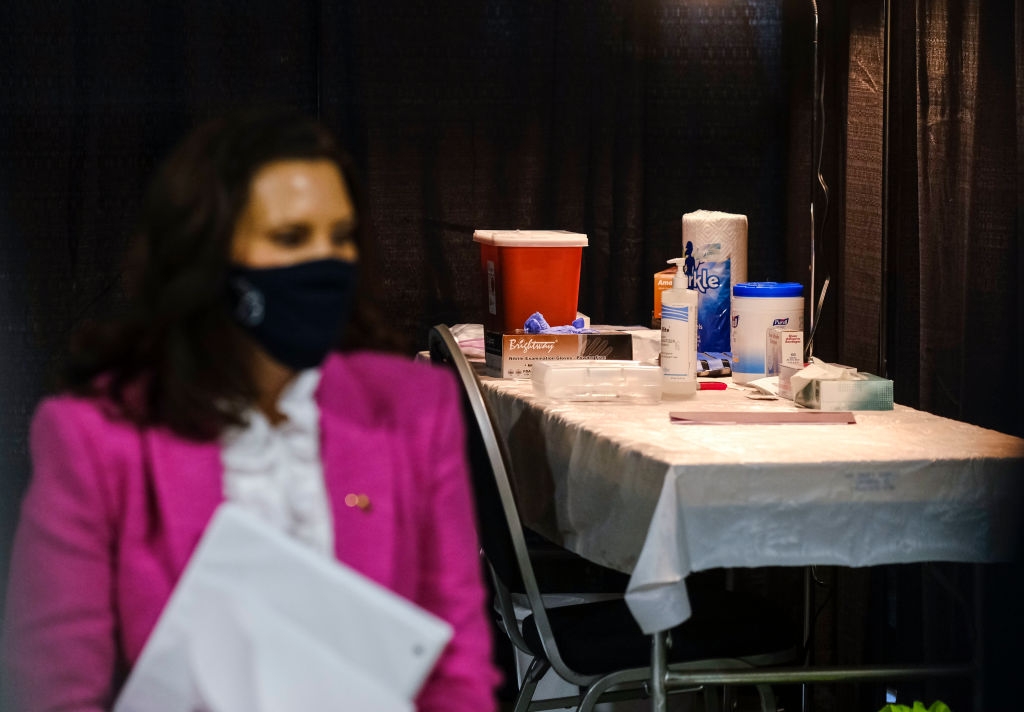 “Taking steps back wasn’t going to fix the issue,” Whitmer said as she got her first vaccine Tuesday at Ford Field in Detroit, home of the NFL’s Lions. “What we have to do is really put our foot down on the pedal on vaccines” and urge people to wear masks, keep their social distance and wash their hands.