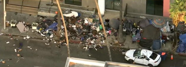 In Los Angeles, four people were sent to the hospital after a car crashed into a homeless encampment Tuesday morning. Authorities say the car involved had collided with another vehicle before losing control, driving up onto the sidewalk and plowing into that encampment in Koreatown.