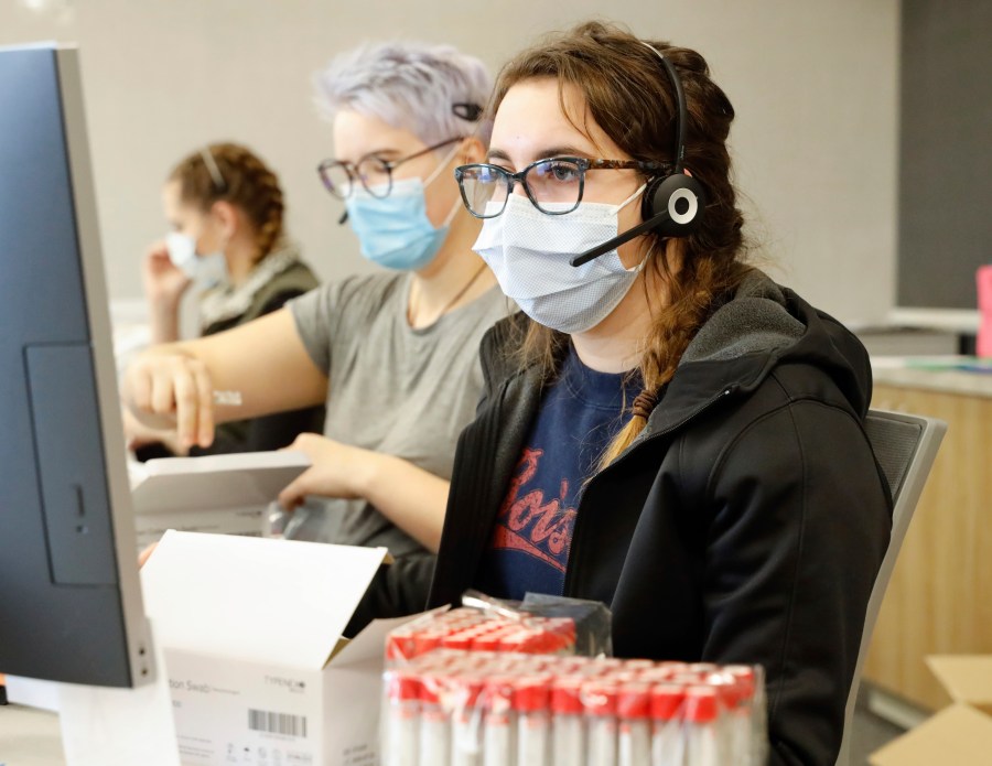 Employees schedule COVID-19 tests and prepare test kits at Primary Health Medical Group’s clinic in Boise, Idaho, on Tuesday, Nov. 24, 2020. Troops direct people outside the urgent-care clinic revamped into a facility for coronavirus patients as infections and deaths surge in Idaho and nationwide. (AP Photo/Otto Kitsinger)