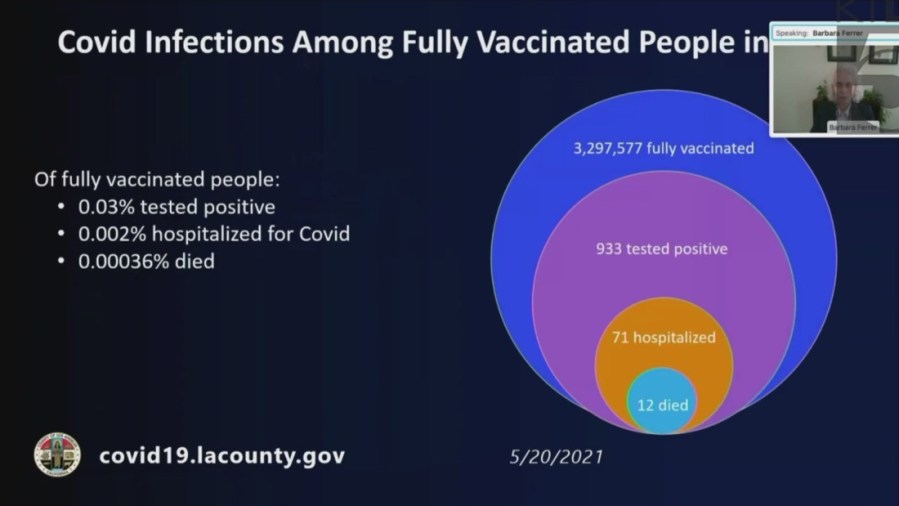 LOS ANGELES (KTLA) — With millions of people in Los Angeles County now fully vaccinated against COVID-19, public health officials said Thursday evidence is becoming clearer that the shots provide exceptional protection against sickness and death from the virus.