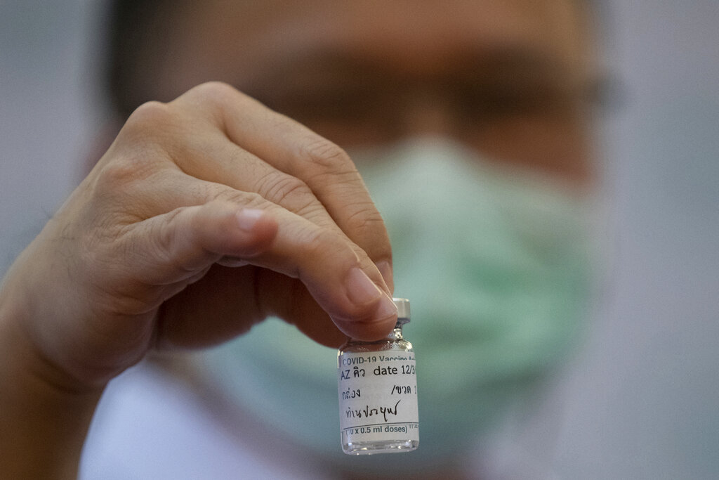 FILE – In this March 12, 2021, file photo, a health worker holds a bottle of AstraZeneca COVID-19 vaccine with name Thailand’s Prime Minister Prayuth Chan-ocha written on it, at Bamrasnaradura Hospital in Bangkok, Thailand. In recent days, countries including Denmark, Ireland and Thailand have temporarily suspended their use of AstraZeneca’s coronavirus vaccine after reports that some people who got a dose developed blood clots, even though there’s no evidence that the shot was responsible. The European Medicines Agency and the World Health Organization say the data available do not suggest the vaccine caused the clots. (AP Photo/Sakchai Lalit, File)