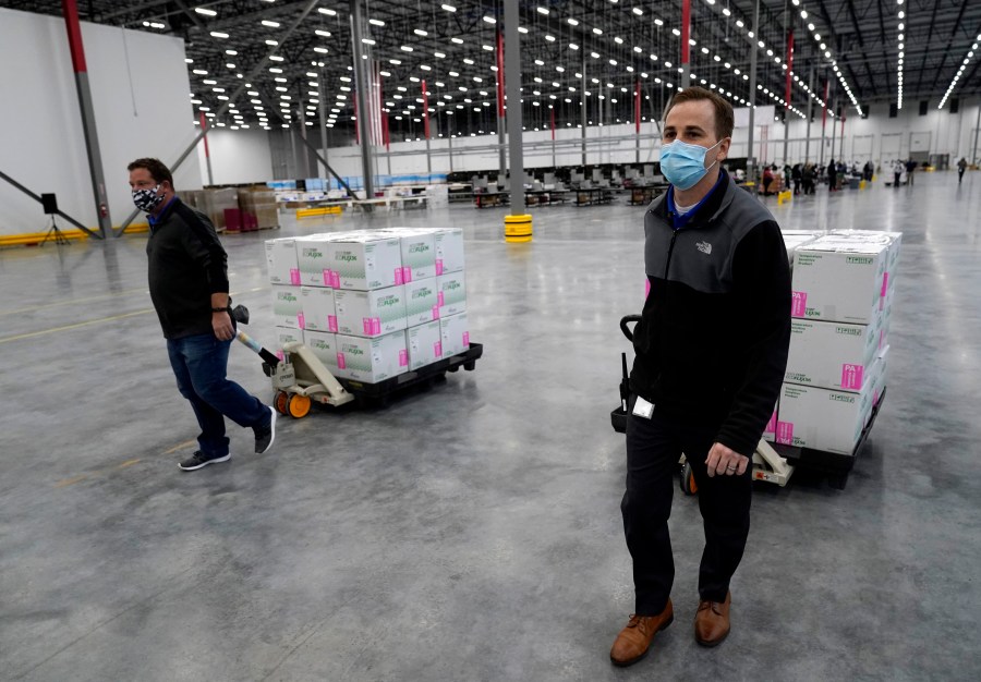 Moderna on Saturday moved vaccines from its manufacturing plants to warehouses operated by distributor McKesson Corp where they were packed into containers and loaded onto trucks. Shipments are departing Sunday and will start reaching healthcare providers as soon as Monday, Perna said.
