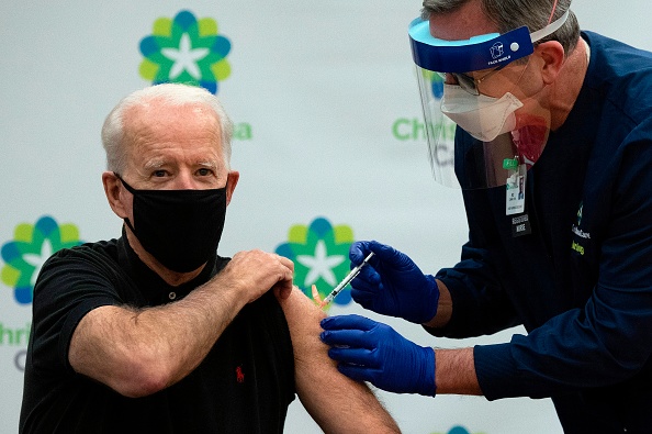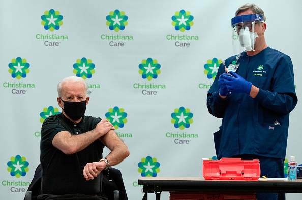 Biden pulled off his sport jacket to reveal a dark, short-sleeve T-shirt underneath and said, “Ready, set, go.” Chief Nurse Executive Ric Cumin administered the vaccine at Christiana Hospital in Newark, Delaware, close to president-elect’s home.