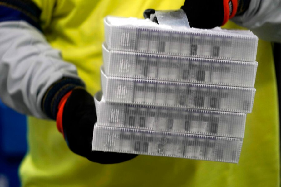 Packed in dry ice to stay at ultra-frozen temperatures, the first of nearly 3 million doses being shipped in staggered batches this week made their way by truck and by plane around the country Sunday from Pfizer’s Kalamazoo, Michigan, factory. Once they arrive at distribution centers, each state directs where the doses go next.
