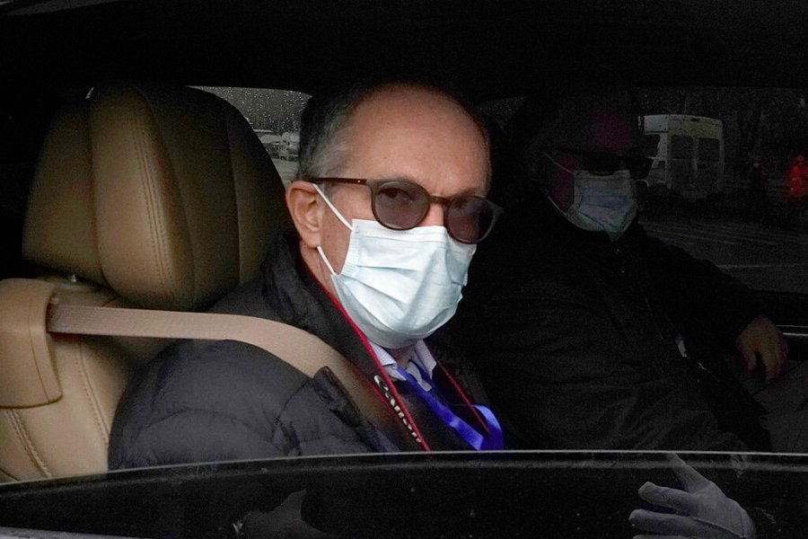 Ken Maeda, center, of the World Health Organization team prepares to leave for a third day of field visit in Wuhan in central China’s Hubei province on Sunday, Jan. 31, 2021. (AP Photo/Ng Han Guan)