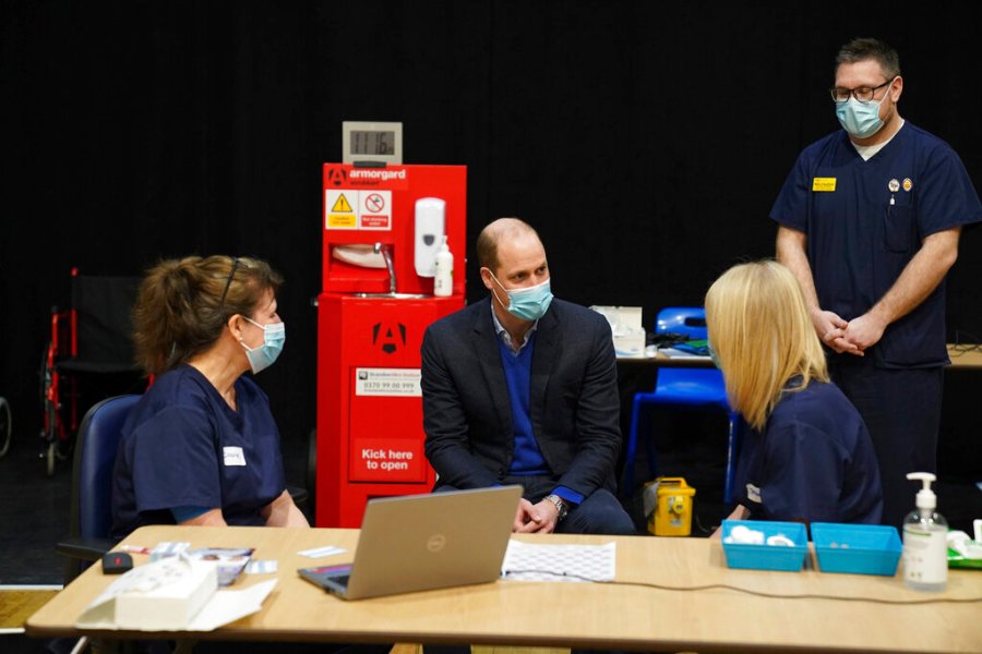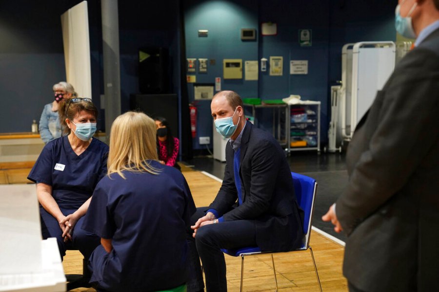 KING’S LYNN, ENGLAND – FEBRUARY 22: Prince William, Duke of Cambridge visits King’s Lynn Corn Exchange Vaccination Centre on February 22, 2021 in King’s Lynn, England. The Duke spoke to NHS staff and volunteers and heard more about their experiences of being involved in the vaccination programme. (Photo by Arthur Edwards – WPA Pool/Getty Images)