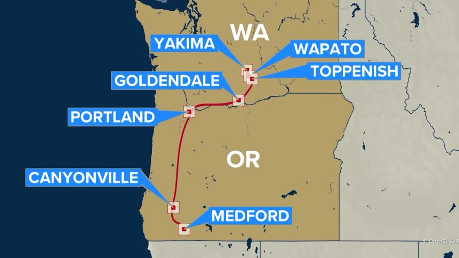 Cities in Washington and Oregon where Aurelio Escobar is believed to have carjacked or attempted to switch vehicles.