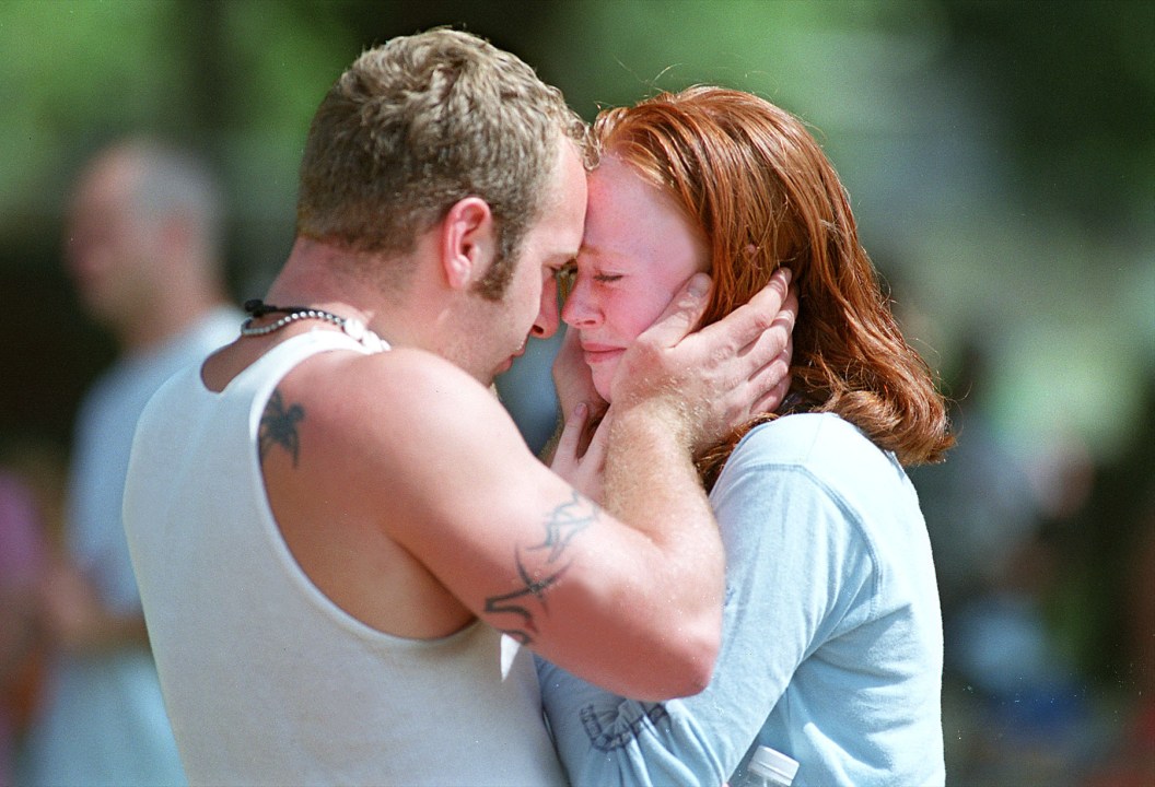 WARREN – 6/28/00 – Friends or family of Molly Ann Bish comfort each other in the center of Warren where search parties conglomerated and friends of Bish’s gathered to await news about the vanished 16-year-old lifeguard on Wednesday.