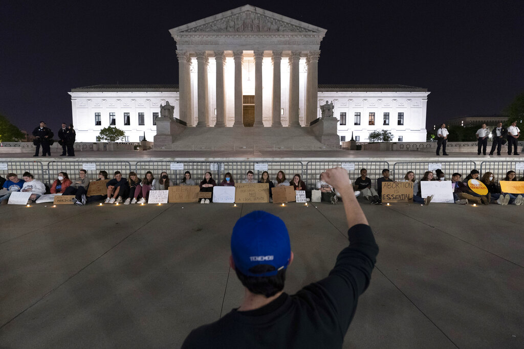 A crowd of people gather outside the Supreme Court early Tuesday, May 3, 2022, in Washington. A draft opinion suggests the U.S. Supreme Court could be poised to overturn the landmark 1973 Roe v. Wade case that legalized abortion nationwide, according to a Politico report released Monday. Whatever the outcome, the Politico report represents an extremely rare breach of the court’s secretive deliberation process, and on a case of surpassing importance. (AP Photo/Alex Brandon)