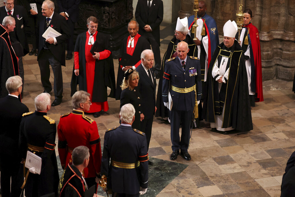 U.S. President Joe Biden was among leaders to pay their respects at the queen’s coffin on Sunday as thousands of police, hundreds of British troops and an army of officials made final preparations for the funeral.