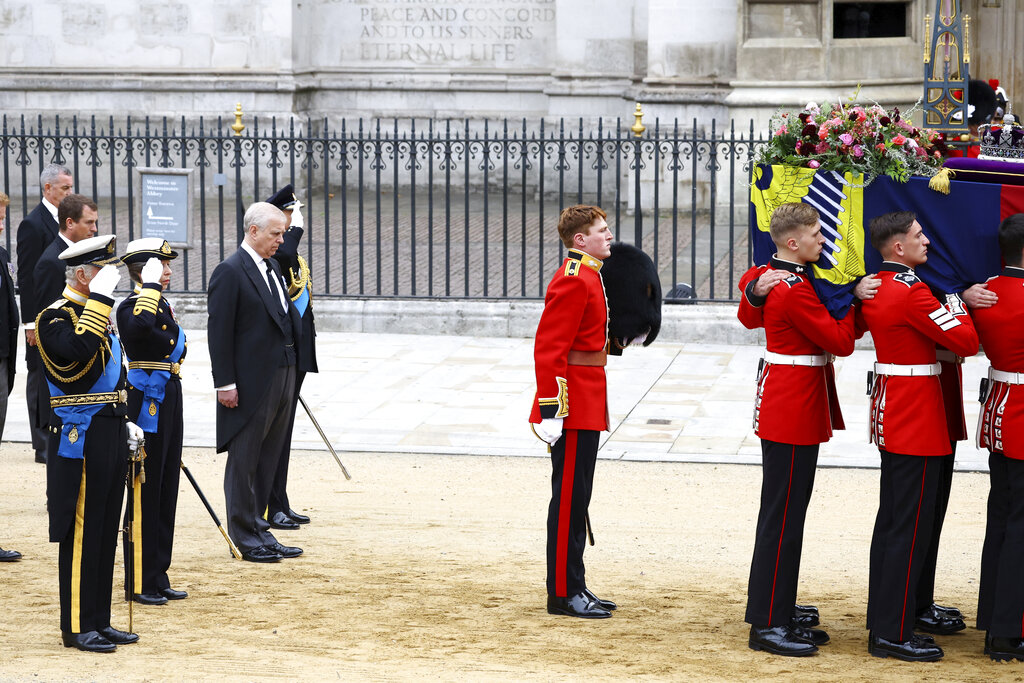 Following the funeral in the medieval abbey where Elizabeth was married and crowned, her coffin — ringed by units of the armed forces in dress uniforms and members of her family — will be brought through the capital’s streets to Wellington Arch near Hyde Park.