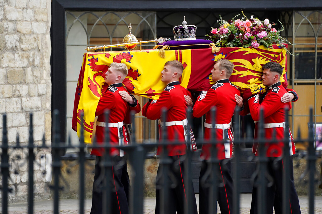 There, it will be placed in a hearse to be driven to Windsor Castle — where Elizabeth spent much of her time — for another procession before a committal service in St. George’s Chapel. She will be laid to rest with her late husband, Prince Philip, at a private family service.